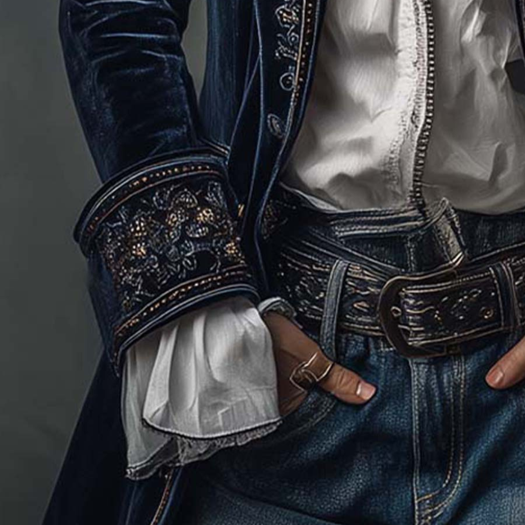Federica Vintage Long Velvet Jacket with Embroidery – Elegance & Comfort