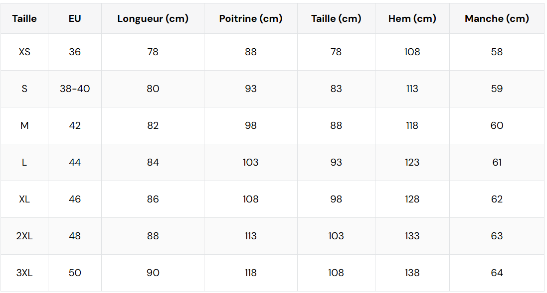 Colors may appear differently in photos compared to reality. The dimensions indicated are in centimeters and may vary by 1 to 3 cm. You will find the size chart among the photos. If in doubt between two sizes, choose the larger of the two. KB-202